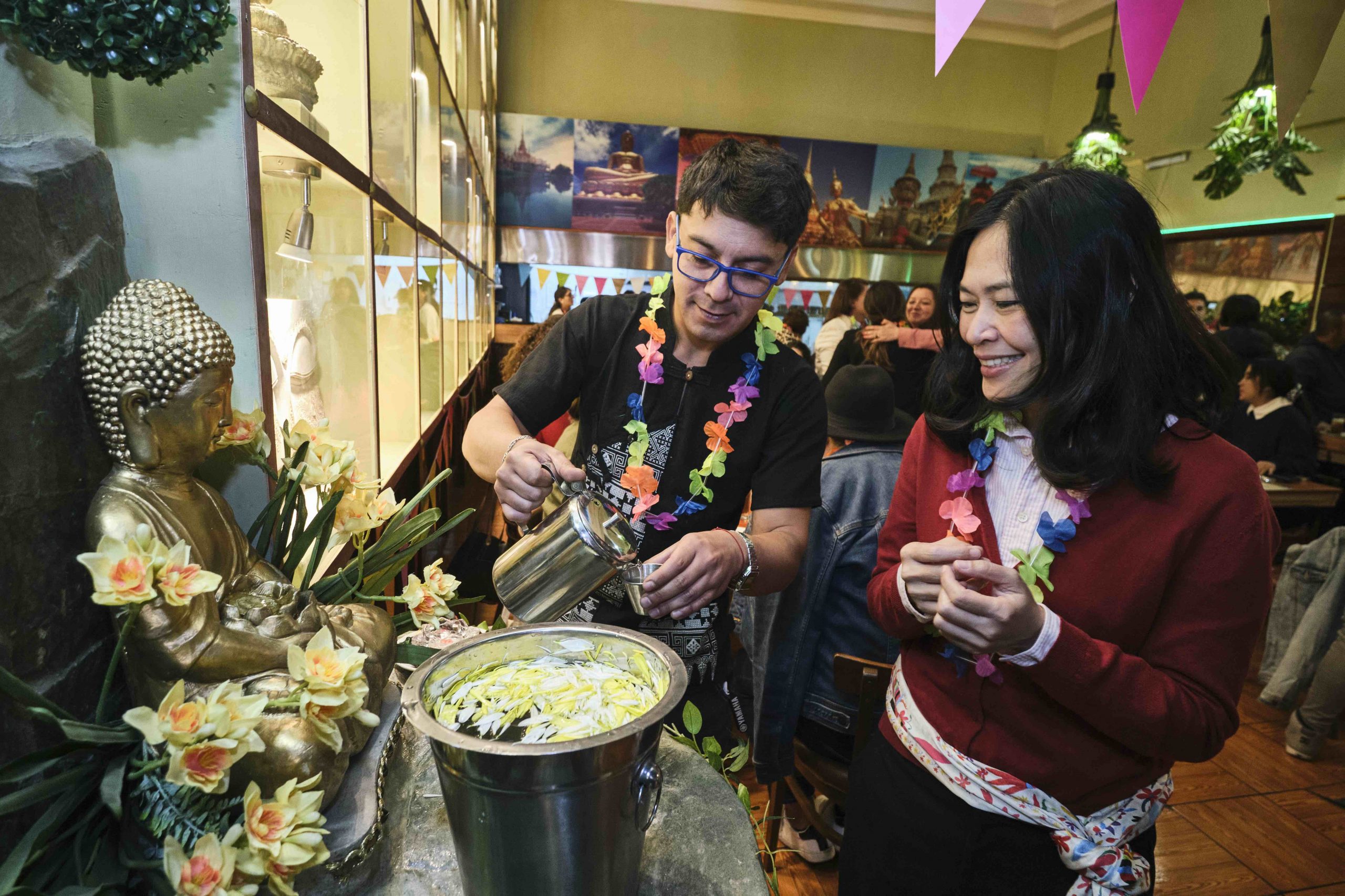 Una mañana de colores y sabores tailandeses se vivió en Bangkok Restaurant, en el marco de la celebración de ¡Sabaidi Pi Mai! o Feliz año nuevo Tailandés, uno de los principales festejos del mágico país ubicado en el Sudeste Asiático, que marca un nuevo ciclo de 365 días de buenas energías y deseos.