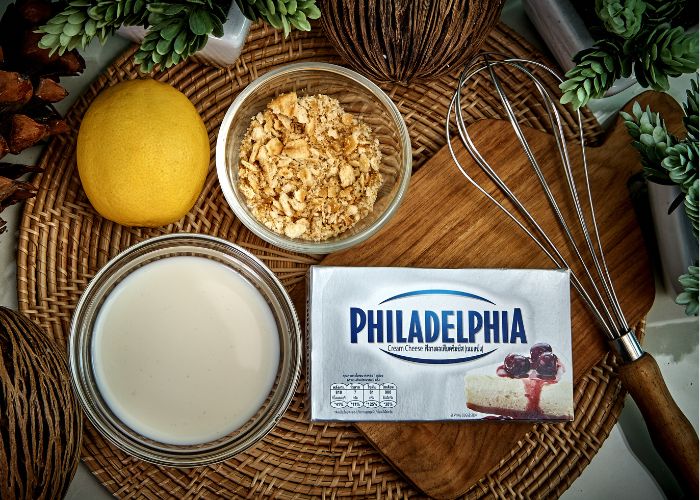 Incorpora el queso crema: Agrega el Philadelphia a la mezcla y revuelve suavemente hasta integrar.
